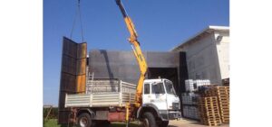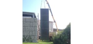 Facciata in lamiera Cor-ten realizzata per la cantina-vineria Ciavolich; nelle immagini una sequenza dei lavori.